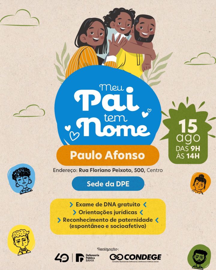 A ação faz parte da campanha Meu Pai Tem Nome, promovida pelo Conselho Nacional das Defensoras e Defensores Públicos-Gerais (Condege), que tem como objetivo reduzir o número de casos de filhos e filhas com pais ausentes. Em decorrência da campanha, a Defensoria Pública dos estados e do Distrito Federal promove com uma programação voltada à efetivação do direito fundamental de filiação.