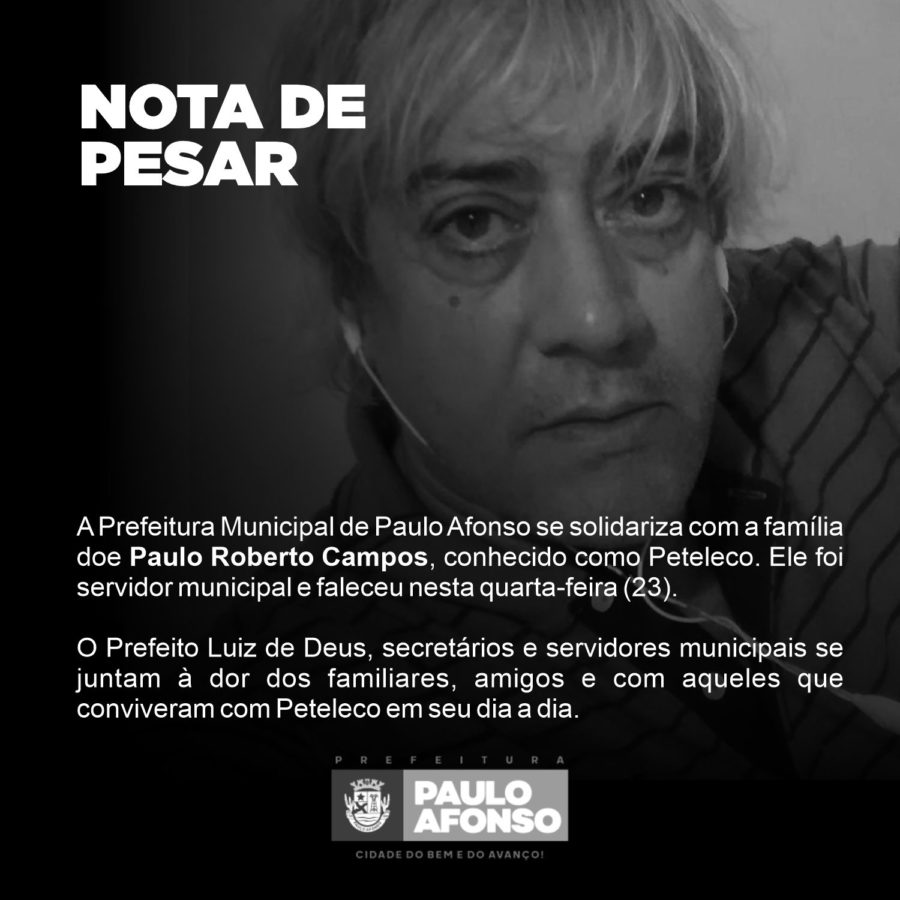 Paulo Peteleco também foi funcionário da prefeitura de Paulo Afonso, e logo após a confirmação de sua morte, o prefeito Luiz de Deus, publicou nota de pesar se solidarizando com a família, amigos e os que conviveram com ele no dia a dia.