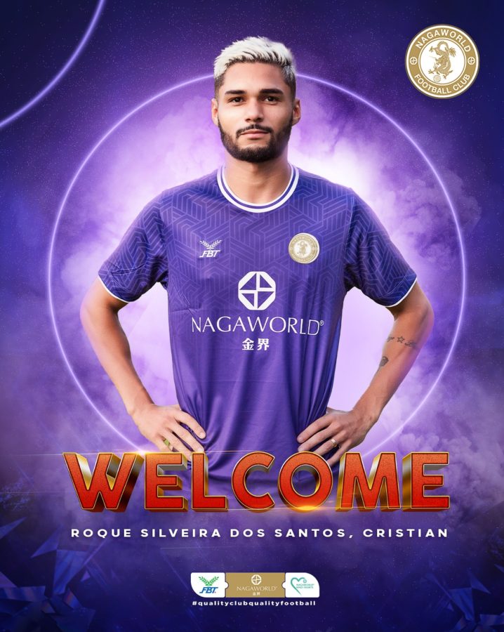 “Damos as boas-vindas ao nosso novo jogador Roque Silveira Dos Santos, Cristian por se juntar ao Nagaworld Football Club nesta temporada. O clube espera fortemente que Roque Silveera Dos Santos, Cristiano mostre bem sua capacidade na nova temporada. Mas essa cara. Ia gnt koe koe.”
