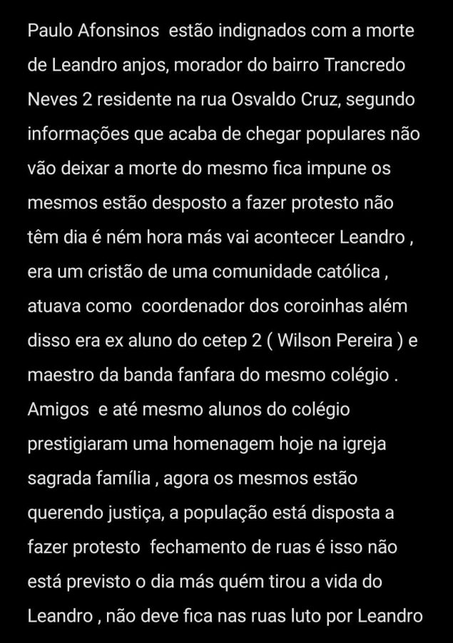 Enquanto todos se despediam de Leandro, uma onda de indignação se espalhava. Nas redes sociais, uma nota reivindicando justiça começou a circular, evidenciando a determinação da população local em não deixar o crime impune. “Pauloafonsinos estão indignados com a morte de Leandro Anjos. Populares não vão deixar que a morte dele fique impune. Estão dispostos a fazer protesto,” afirmava a mensagem. Embora ainda não houvesse detalhes sobre data e hora, o compromisso com a manifestação era claro.