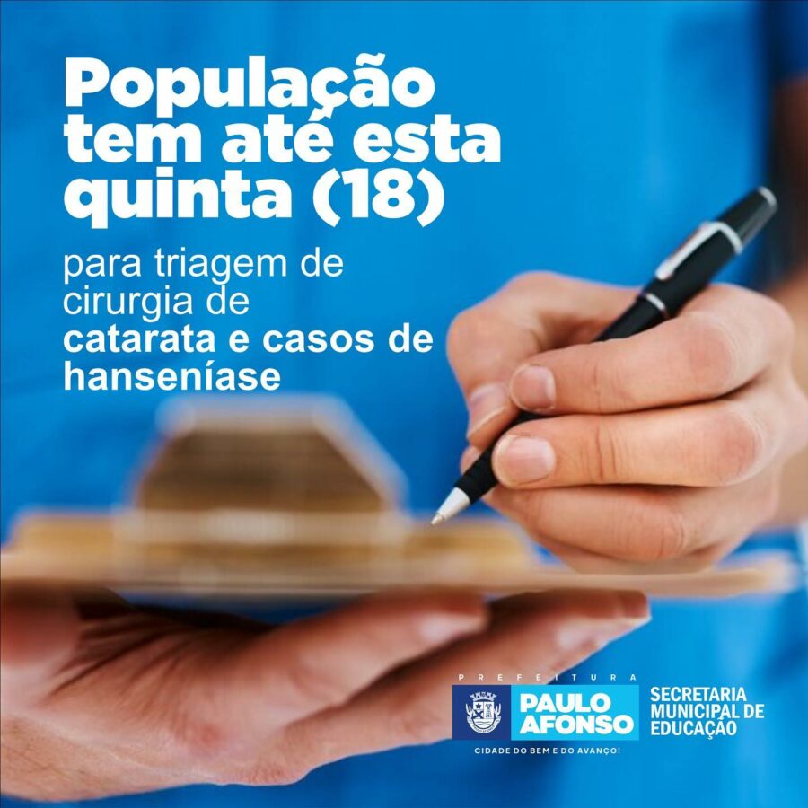 A cirurgia de catarata será ofertada durante a Feira da Saúde, que acontece na Policlínica Regional, em parceria com o Estado. Os procedimentos serão realizados no Hospital Municipal de Paulo Afonso (HMPA).