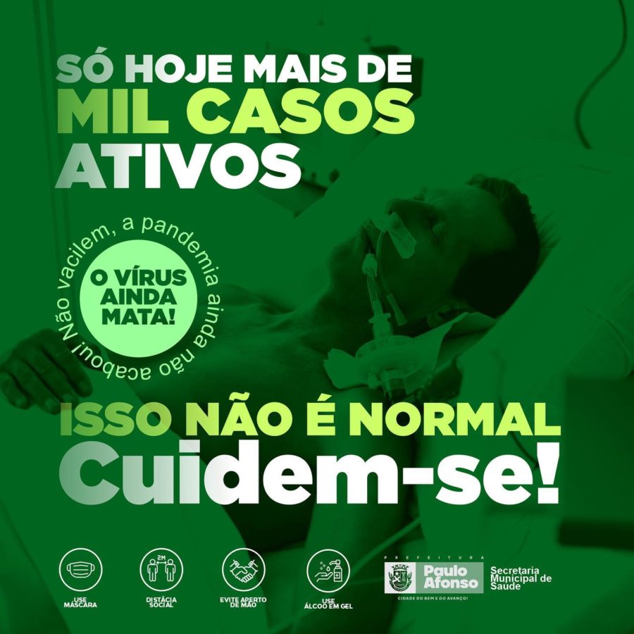 Com mais 422 novos infectados nos últimos três dias, os casos ativos de covid-19 mais uma vez dispararam em Paulo Afonso, chegando pela primeira vez, desde o início da pandemia, a quatro dígitos, ou seja, mais de mil pessoas contaminadas.