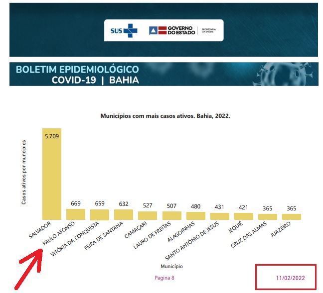 Mesmo os números divulgados hoje, pela SESAB – Secretaria Estadual de Saúde (669), estando bem abaixo dos registrados pela Vigilância Epidemiológica de Paulo Afonso (1070), ainda assim, Paulo Afonso tem o maior número de casos ativos do interior da Bahia, alcançando novamente o indesejável 2º lugar em casos ativos, mesma posição do final do primeiro semestre de 2021. Paulo Afonso só perde para a capital, Salvador.
