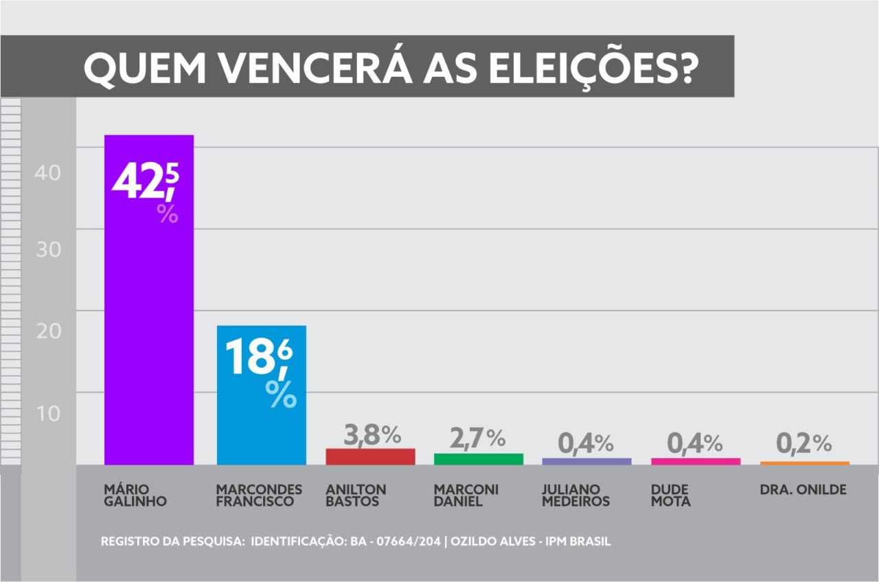 Perguntados sobre quem ganhará a eleição em 2024, independentemente da intenção de voto do entrevistado, no cenário espontâneo, 42,5% dos entrevistados responderam que será Mário Galinho o vencedor.