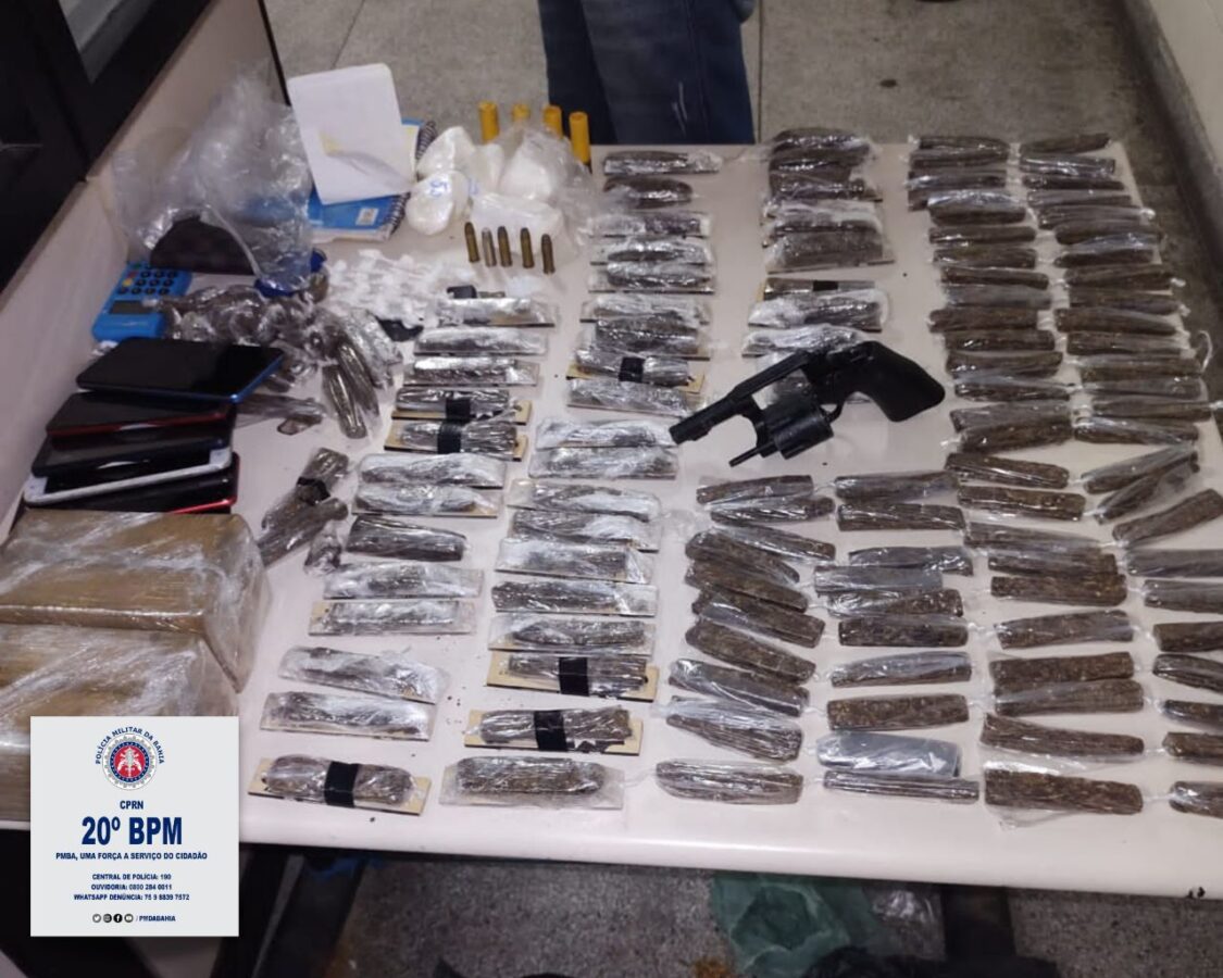 Muita droga e arma de fogo encontradas pela PM na Rua Tucuruí, no Bairro Tancredo Neves 1, em Paulo Afonso, Bahia. A apreensão ocorreu às 17:15 dessa segunda-feira, 16 de janeiro. Um suspeito foi preso.