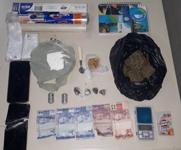 Durante a operação, os policiais se depararam com indivíduos que, ao notarem a presença policial, tentaram se desfazer de uma sacola contendo diversos itens associados ao tráfico. Entre os materiais apreendidos estavam 62,6g de uma substância análoga à cocaína, 37,2g de crack, 166g de maconha, além de equipamentos utilizados para a pesagem e embalagem das drogas.