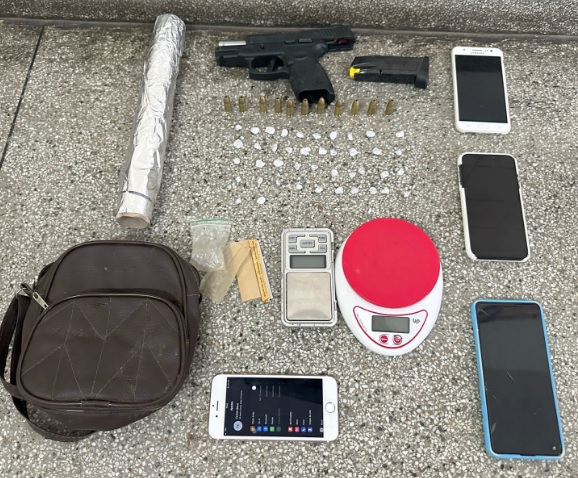 No interior da residência, foram apreendidos 42 pedras de crack, duas balanças de precisão, quatro celulares, um rolo de papel alumínio, papel de seda e a quantia de R$ 20,00. Adicionalmente, foi constatado que a arma apreendida tinha registro de roubo e pertencia a um agente penal do Estado de Alagoas.