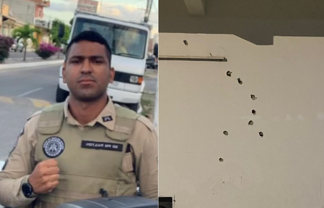 A equipe do @sitepa4 foi até o local do fato e registrou marcas de diversos tiros na frente da parede do prédio onde o crime ocorreu. Um vídeo, circulando em grupos de WhatsApp, exibe o corpo do policial sendo carregado pelos próprios colegas de farda e colocado em uma viatura da PM.
