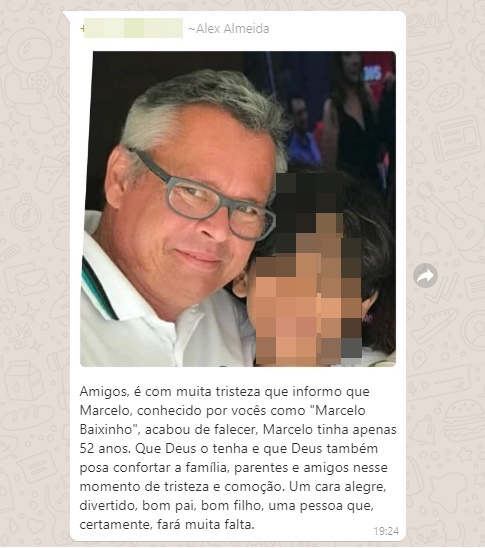“Amigos é com muita tristeza que informo que Marcelo, conhecido por vocês como “Marcelo Baixinho”, acabou de falecer, Marcelo tinha apenas 52 anos. Que Deus o tenha e que Deus também posa confortar a família, parentes e amigos nesse momento de tristeza e comoção. Um cara alegre, divertido, bom pai, bom filho, uma pessoa que, certamente, fará muita falta.”, escreveu.