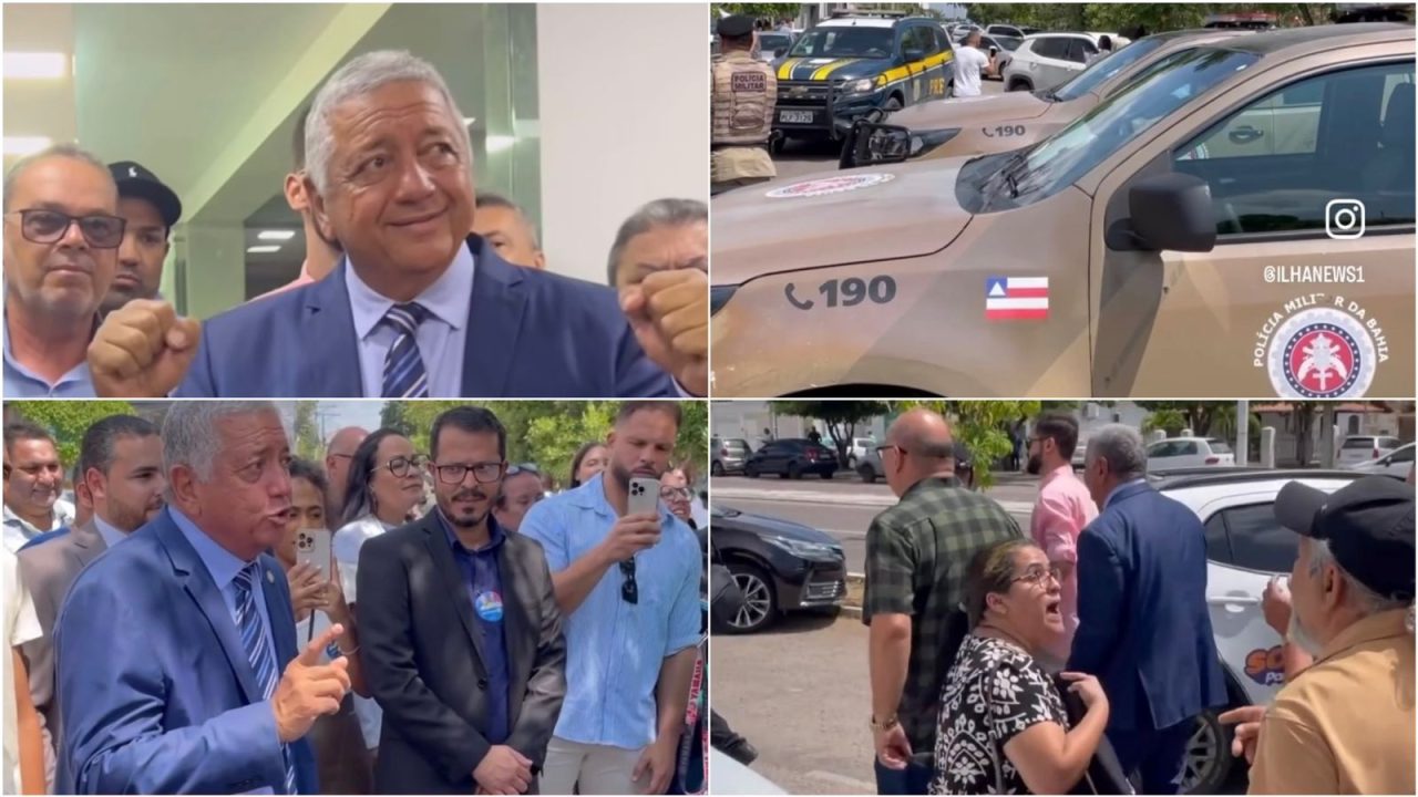 Na manhã desta quarta-feira, 21 de agosto, a solenidade de posse do vice-prefeito Marcondes Francisco (PP) como novo prefeito de Paulo Afonso foi marcada por protestos de populares. A cerimônia na Câmara Municipal foi acompanhada por bloqueios nos acessos ao prédio, além da presença de policiais militares, guarda municipal e agentes de trânsito.