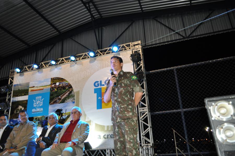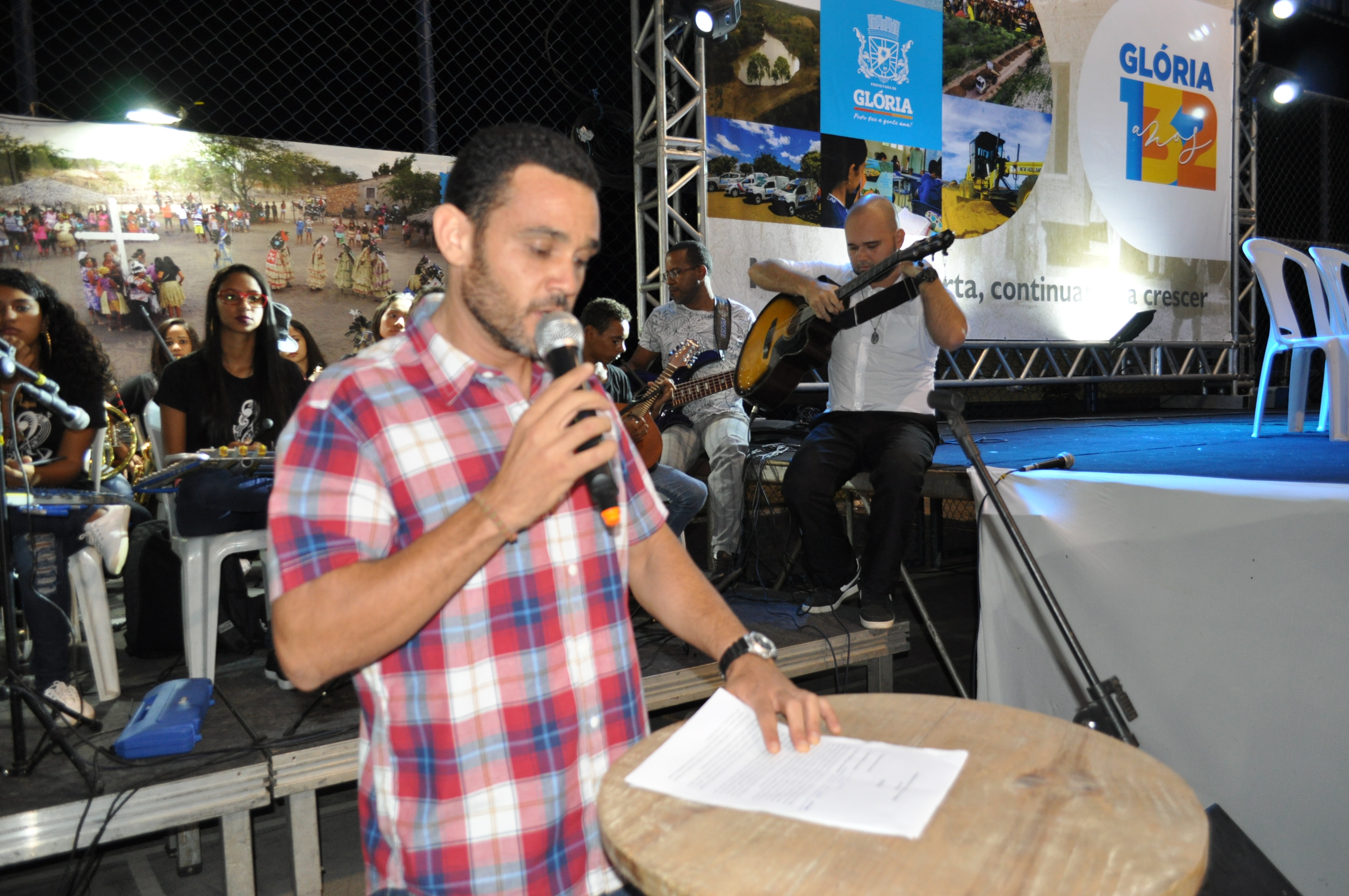 O prefeito David Cavalcanti aproveitou o momento de seu discurso e o dia festivo para falar sobre a atual situação do município, das melhorias alcançadas na saúde, educação, infraestrutura e agricultura anunciando um pacote de presentes em forma de obras e de gratidão ao povo de Glória.