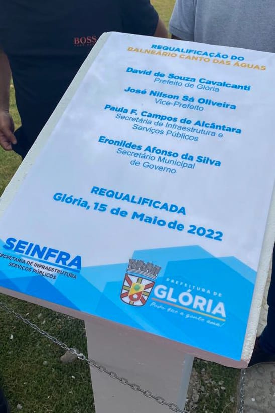 A solenidade de entrega das obras de requalificação do Balneário Canto das Águas e da Construção de 02 novos quiosques, neste domingo, contou com as presenças do Prefeito Municipal, David Cavalcanti; do Presidente da Câmara, Missão de Dotor; dos Vereadores: Antônio Marcos, Beto da Ilha, Fabiano de Zezão, Gilmar Pereira, Koka de Zé Henrique e Miguel Campos; do Suplente de Vereador, Galego de Bezeca; do Secretário de Governo, Nido de Dotor; da Secretária de Infraestrutura e Serviços Públicos, Paula Campos; do Secretário de Assistência Social, Tássio Castor; da Secretária de Administração e Finanças, Adilma Lisboa; do Secretário de Saúde , Flávio Souza; do Comandante do Grupamento de Bombeiro Militar, Tenente Coronel Tarcísio; do Comandante da Polícia Militar de Glória, Capitão Charles; do Delegado Regional, Dr. André Viana; do Delegado de Glória, Dr. Marco Bacelar; da população em geral.