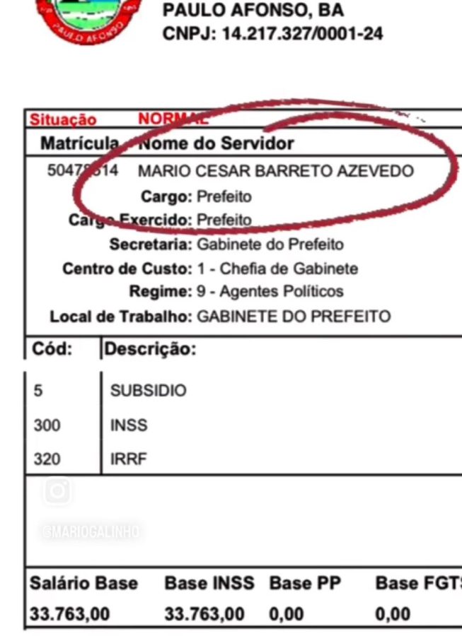 Prefeito de Paulo Afonso, Mário Galinho, cumpre promessa: doará R$ 8 mil e salário líquido baixará para R$ 16.788,58; entenda