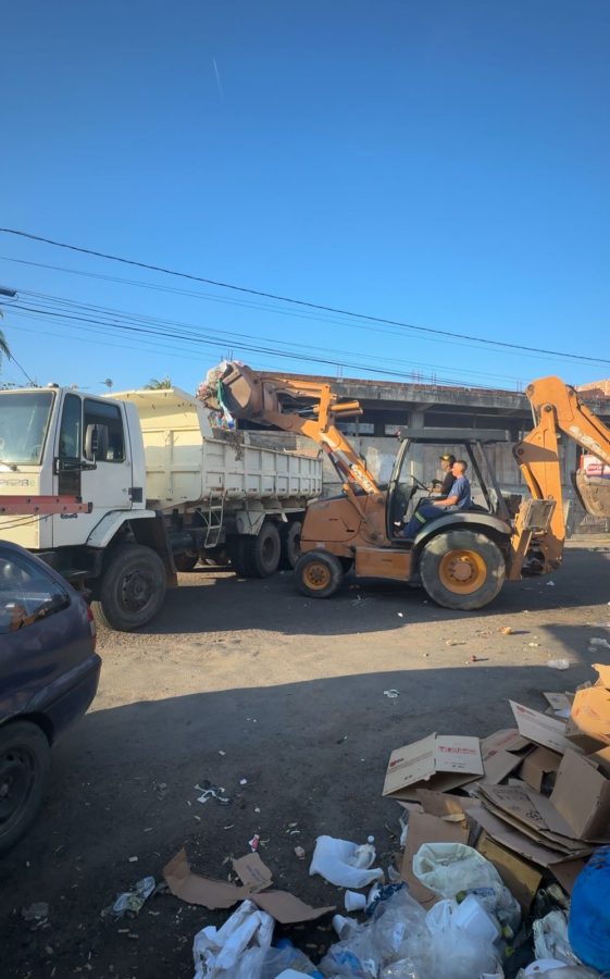 Com a ajuda de máquinas pesadas, como o trator e a caçamba, foram removidos restos de embalagens, papelões, plásticos e até entulhos que dificultavam a mobilidade e prejudicavam a aparência do local. Ao final da ação, o espaço foi completamente limpo e reorganizado, gerando alívio e elogios por parte dos moradores.