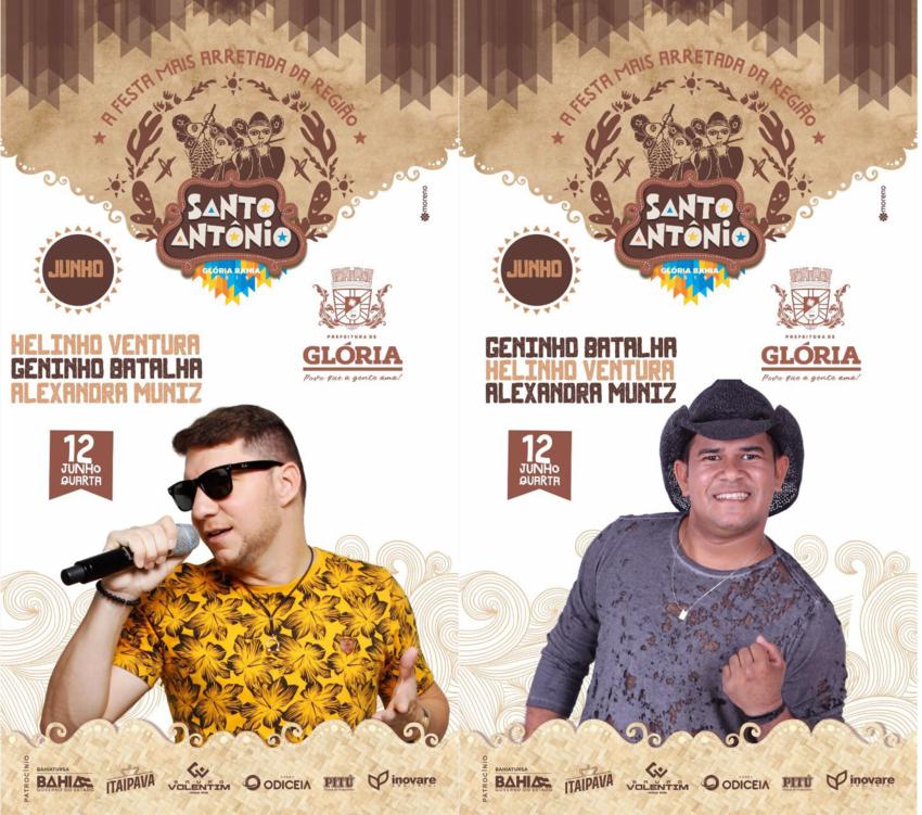 E hoje (12), na festa de Santo Antônio de Glória: Geninho Batalha e Helinho Ventura!