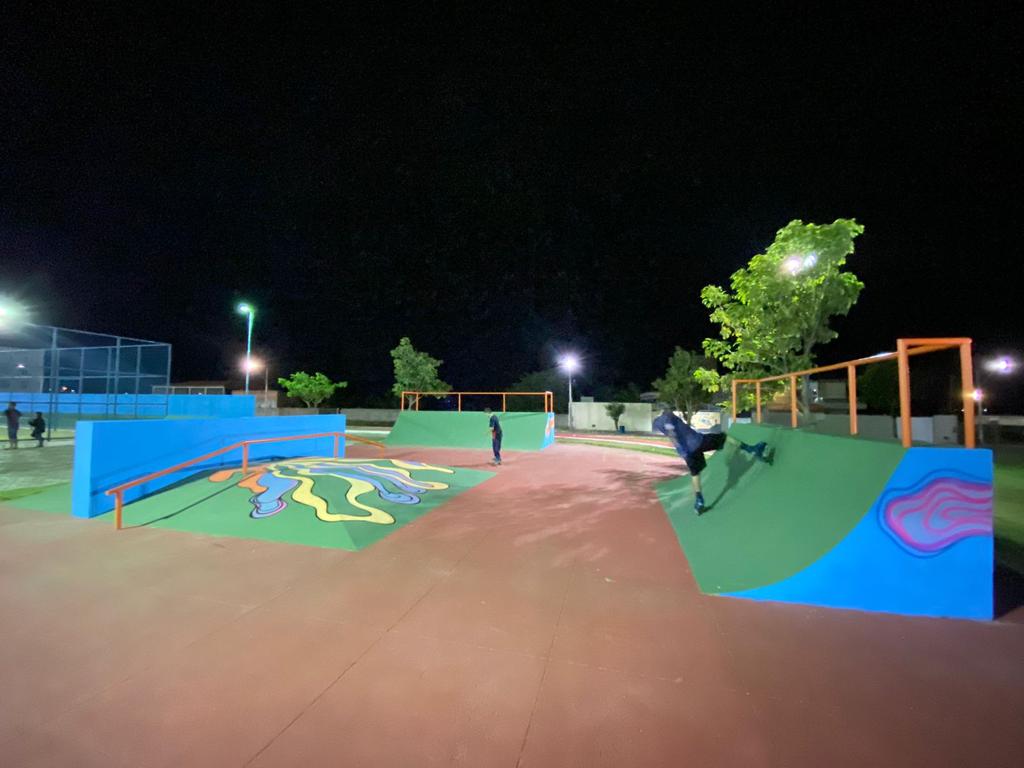 A requalificação da Praça da Juventude compreende: pintura na quadra de esportes e do alambrado; novo gramado sintético no campo de futebol; requalificação do espaço dos skatistas; revisão elétrica e hidráulica; forro em uma sala; revisão da iluminação na quadra de esportes.
