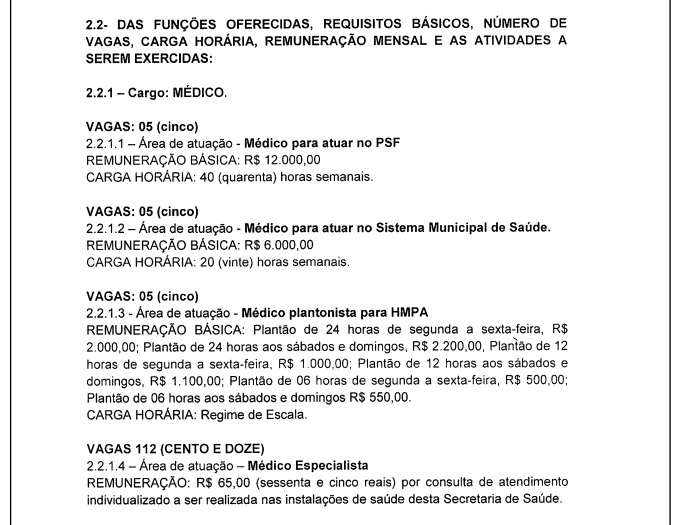 A Prefeitura Municipal de Paulo Afonso-BA, por meio da Secretaria de Saúde, tendo em vista a necessidade de melhorias no atendimento à população, torna público a realização do Processo Seletivo Simplificado destinado à seleção de pessoal para atuar como médico na Rede Pública de Saúde do Município.