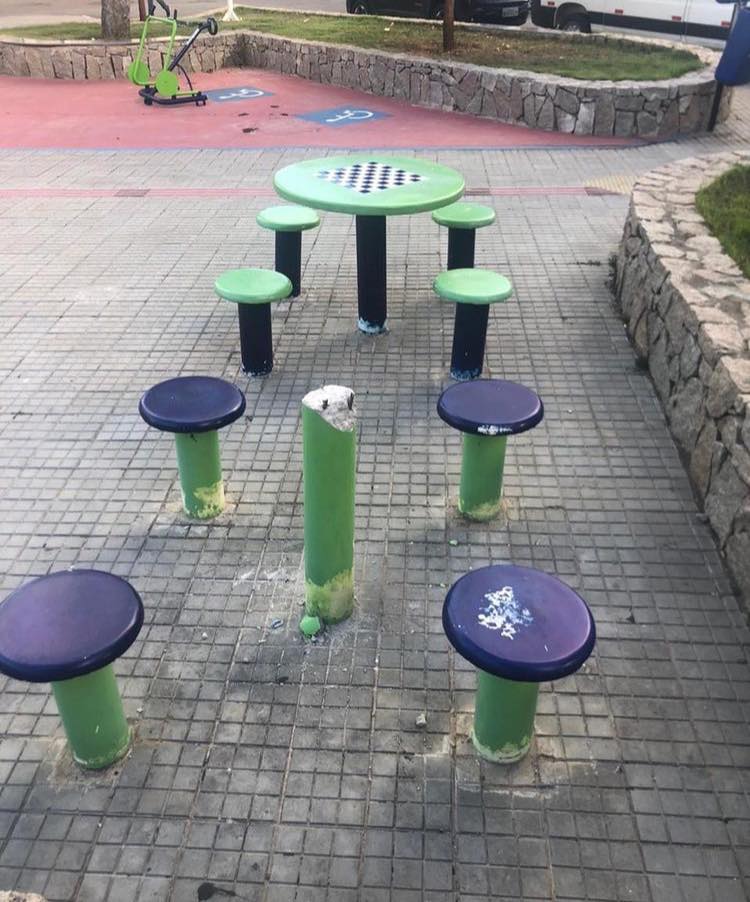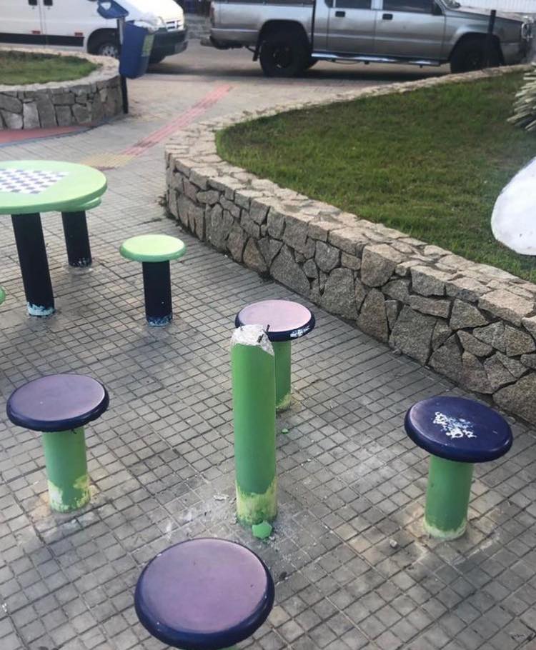 Banquinhos, mesas, equipamentos de ginástica das praças quebrados e até mesmo o furto dos cabos da rede elétrica de avenidas e espaços públicos têm sido uma realidade constante. Até mesmo os compressores dos postos de saúde também são alvo desse tipo de prática.