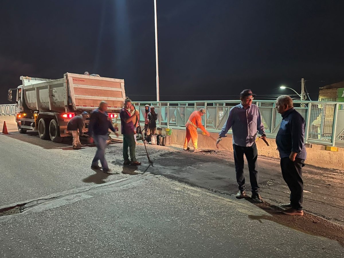 Na noite de quarta-feira (8), as equipes de Infraestrutura e Demutran estiveram realizando a recuperação asfáltica no entorno do PCTRAN, ponte e rotatória para melhorar a trafegabilidade.