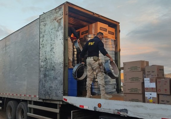 Durante uma operação de fiscalização e combate ao crime, os policiais rodoviários federais abordaram um caminhão VW/24.250. Ao inspecionar o compartimento de carga, encontraram aproximadamente 290.000 maços de cigarros contrabandeados do Paraguai.