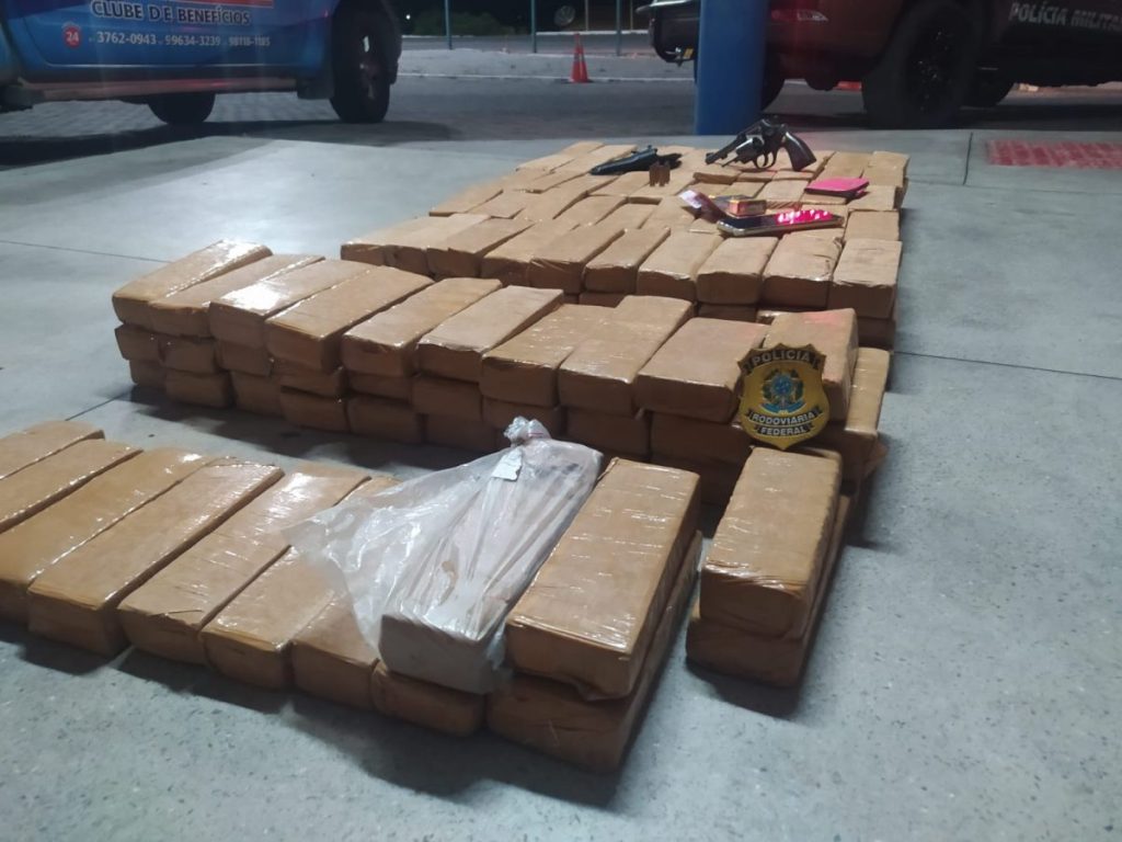 Na noite de quinta-feira (12), uma operação conjunta entre a Polícia Rodoviária Federal (PRF) e a RONDESP Nordeste resultou na apreensão de quase 100 kg de drogas e uma arma de fogo em Paulo Afonso (BA). Durante a fiscalização no km 2 da BR-110, por volta das 21h30, dois homens foram presos transportando uma grande quantidade de entorpecentes.