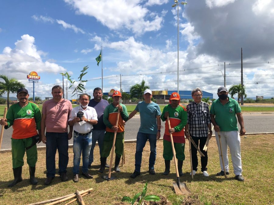 Projeto Arboriza Paulo Afonso planta mudas na rotatória de entrada da cidade