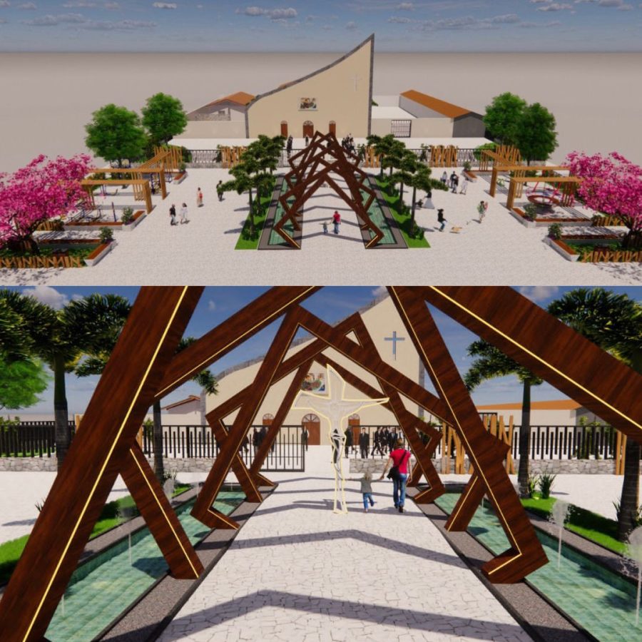 O projeto arquitetônico já foi finalizado, feito pela arquiteta Késsia Matos, que faz parte da equipe da prefeitura, e contempla um pórtico com espelho d’água e monumento do Cristo, playground, academia ao ar livre e muro da igreja, nesta primeira etapa. A obra conta com a contrapartida da Prefeitura e emenda de R$ 150 mil do Vereador Bero do Jardim Bahia e complemento do Deputado Bacelar.