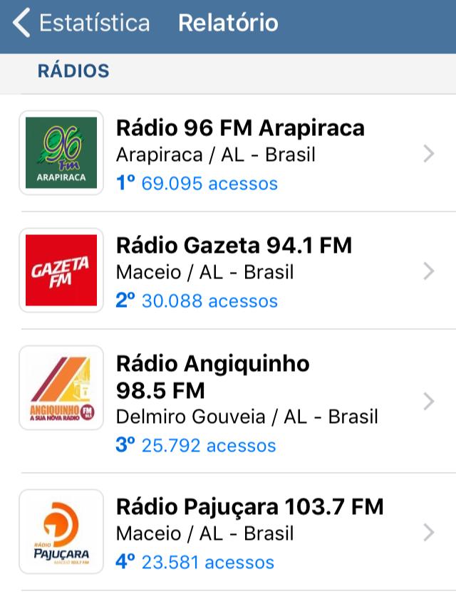 É necessário esclarcer que a posição merecedora, evidentemente, da 1ª colocada, 96FM de Arapiraca, dar-se-a por consequência da referida emissora ser a única cujo aplicativo RádiosNet é aceito em wi fi corporativos.