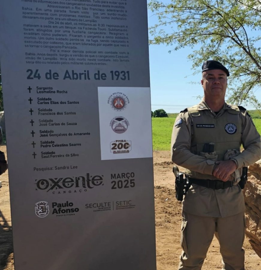 Nesta quarta-feira (26), a Prefeitura de Paulo Afonso em parceria com a Polícia Militar da Bahia, por meio do 20º BPM, realizou uma solenidade de homenagem póstuma aos bravos policiais militares que integraram a histórica Volante Tenente Arsênio. O evento fez parte da programação do “Oxente Cangaço”, iniciativa que busca resgatar e valorizar a memória dos acontecimentos que marcaram a luta contra o cangaço na região.