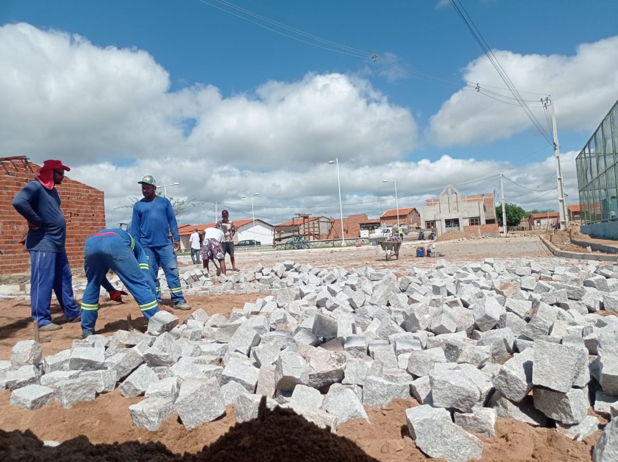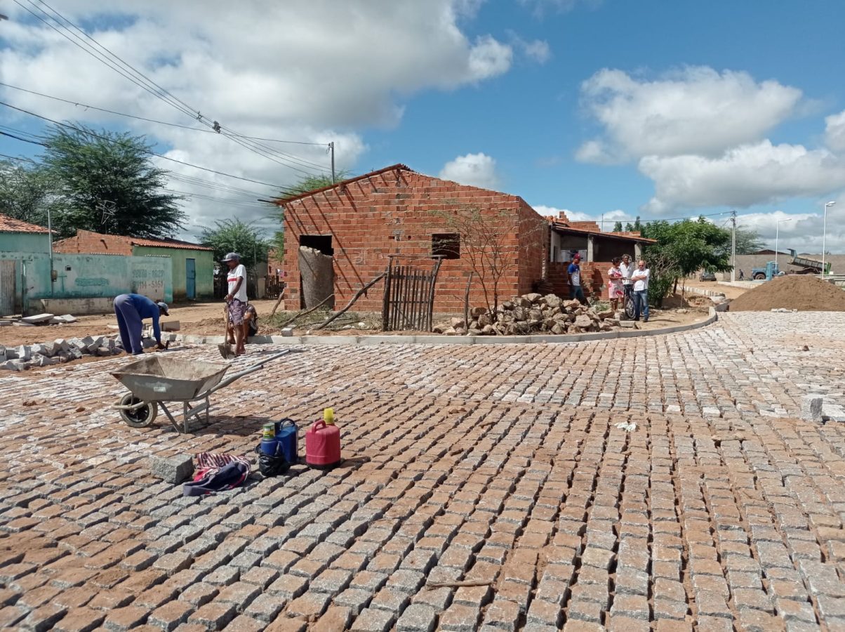 O vereador Gilmário Marinho (PODEMOS), comemora o trabalho da complementação de pavimentação em paralelepípedo em ruas do Bairro Marina França.