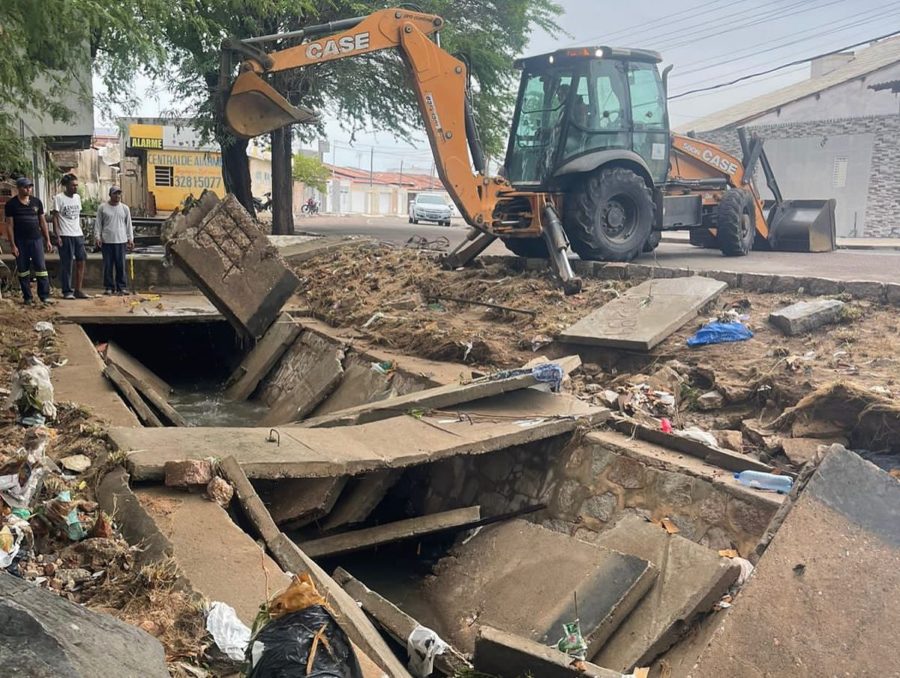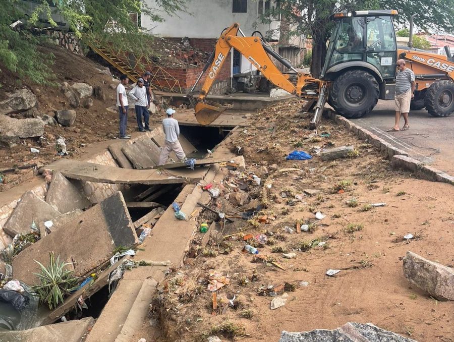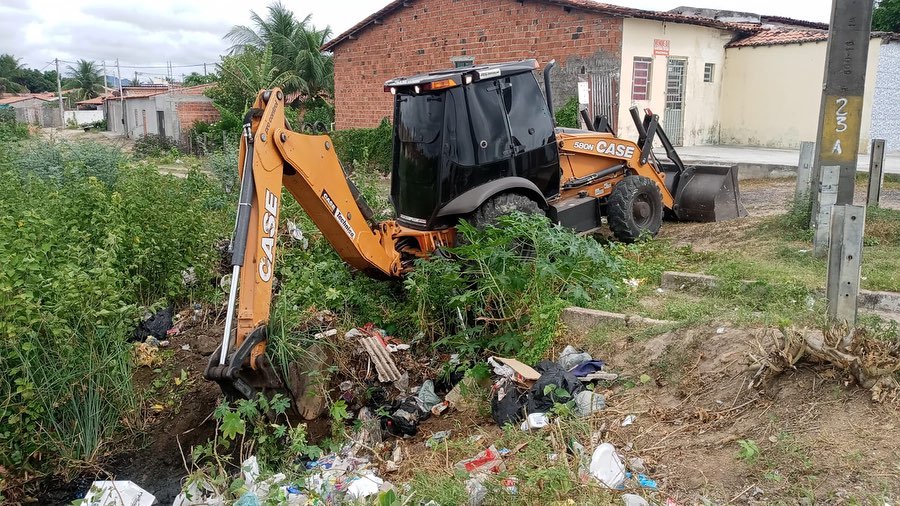 Chegando ao local, a equipe observou a grande quantidade de lixo e entulho que estavam entupindo as manilhas, dificultando muito a passagem das águas. Com o auxílio da máquina, profissionais e caçambas, foram retirados bastante materiais provenientes de lixo doméstico, resto de obras, sofás, janelas, garrafas, ferros, latas, papelão, entre outros.