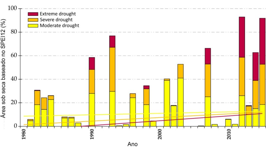 Segundo o pesquisador, foram avaliados os eventos de seca extrema, em termos de frequência, duração, extensão, severidade e impactos, no fluxo do rio e na umidade do solo, no período de 1980 a 2020. “Para isso, analisamos um conjunto de indicadores baseados em dados de satélites e informações coletadas in loco como, índices de precipitação, de evapotranspiração, umidade do solo, índices de severidade da seca no solo e em áreas degradadas. Descobrimos que desde os anos de 1980, esse fenômeno se tornou mais frequente e intenso na Bacia.. Ou seja, nas últimas décadas aumentou a quantidade de secas de intensidade extrema”, anunciou.