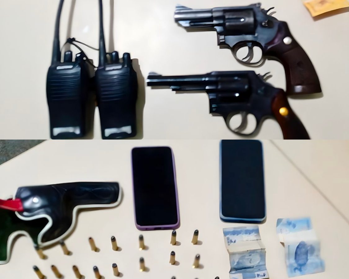 Segundo o relatório policial, a equipe da VTR 3.2001 abordou um veículo em atitude suspeita. Durante a verificação, foram encontrados dois revólveres calibre .38, 33 munições intactas, além de rádios transmissores, celulares e uma quantia em dinheiro.