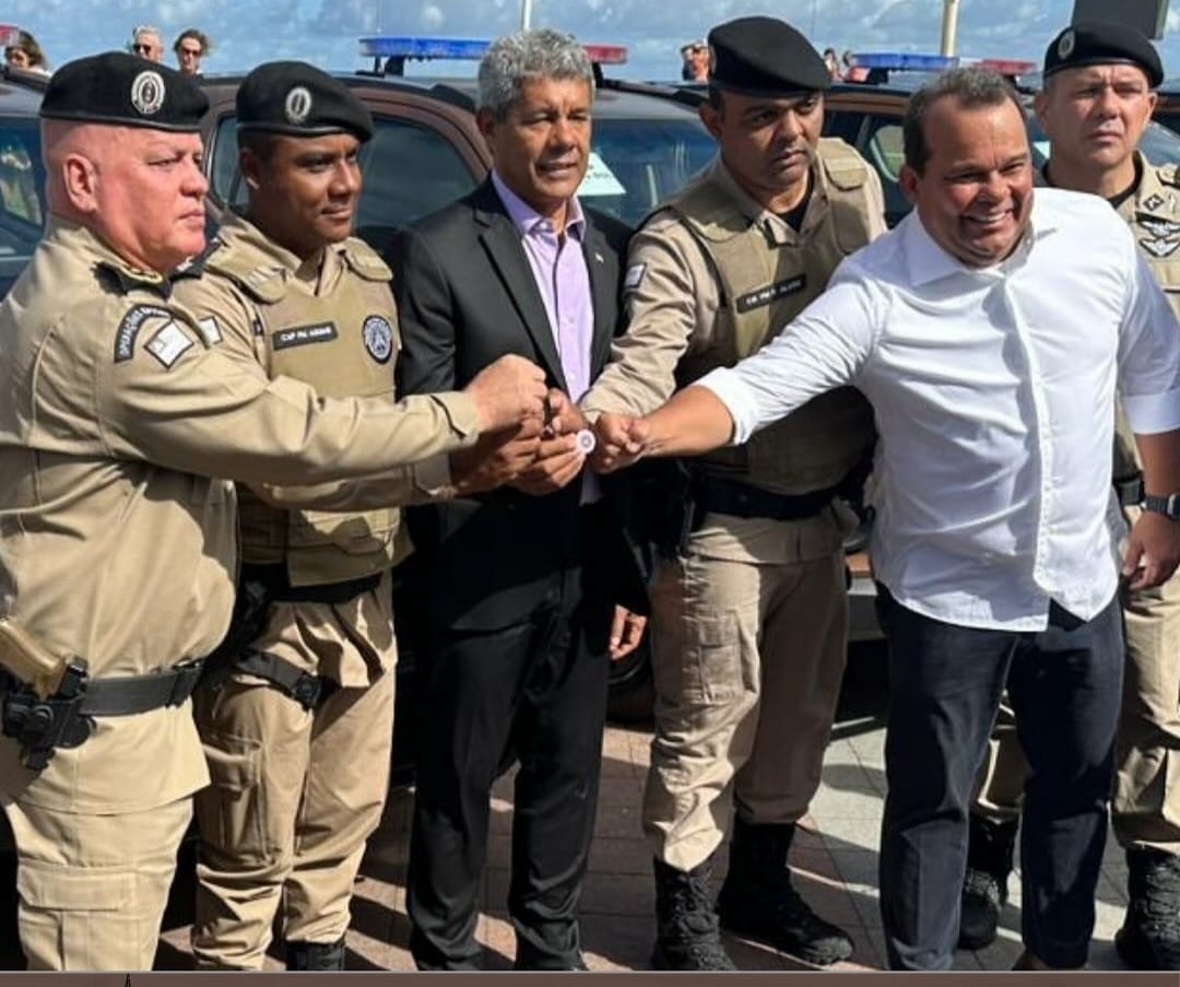 CAP PM Aguiar, comandante da Rondesp Nordeste com sede em Paulo Afonso e ainda em fase de instalação de sua estrutura, recebeu seis novas viaturas entregues pelo Governador Jerônimo Rodrigues, durante cerimônia no Farol da Barra, na manhã dessa quarta-feira (6), em Salvador.