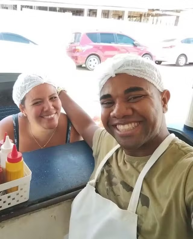 Davi Brito e Mani Reggo na barraca dela, em Salvador — Foto: Redes sociais