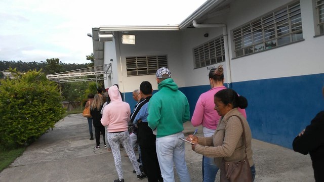 Pacientes fizeram fila no Centro de Saúde do Jardim Rossin, em Campinas, mesmo com aviso de que não havia agendamento com clínico por conta da saída dos médicos cubanos. — Foto: Conselho de Saúde de Campinas/Divulgação