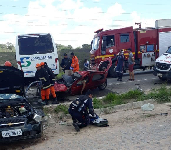 O acidente de graves proporções aconteceu na manhã deste sábado (12), na BR-235, nas proximidades da subestação da Chesf, situada na altura do conjunto Jardim no município de Nossa Senhora do Socorro/SE, e envolveu um micro-ônibus do transporte alternativo de passageiros da Coopertalse e dois veículos de passeio da GM, sendo um Celta licenciado em Areia Branca/SE, e um Corsa Classic com placas de Aracaju.