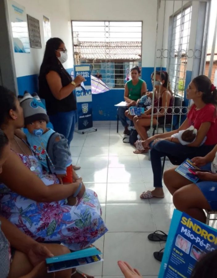 Nesta sexta-feira, dia 28 de julho de 2023, a enfermeira Josiene da equipe da USF José Amém (Torquato) realizou sala de espera com orientações sobre o que é a Síndrome Mão-Pé-Boca e as formas de transmissão e os principais sintomas da doença. Os profissionais que participaram da atividade educativa em sala de espera, foram; Enfª Josiene Pereira, Elizângela Vieira e Patrícia Carine.