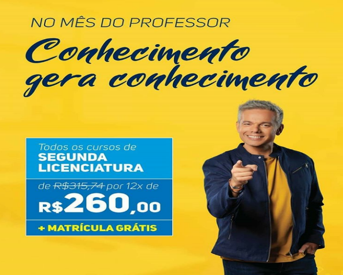 No mês do Professor, curse sua SEGUNDA LICENCIATURA OU FORMAÇÃO PEDAGÓGICA por apenas R$ 260,00.