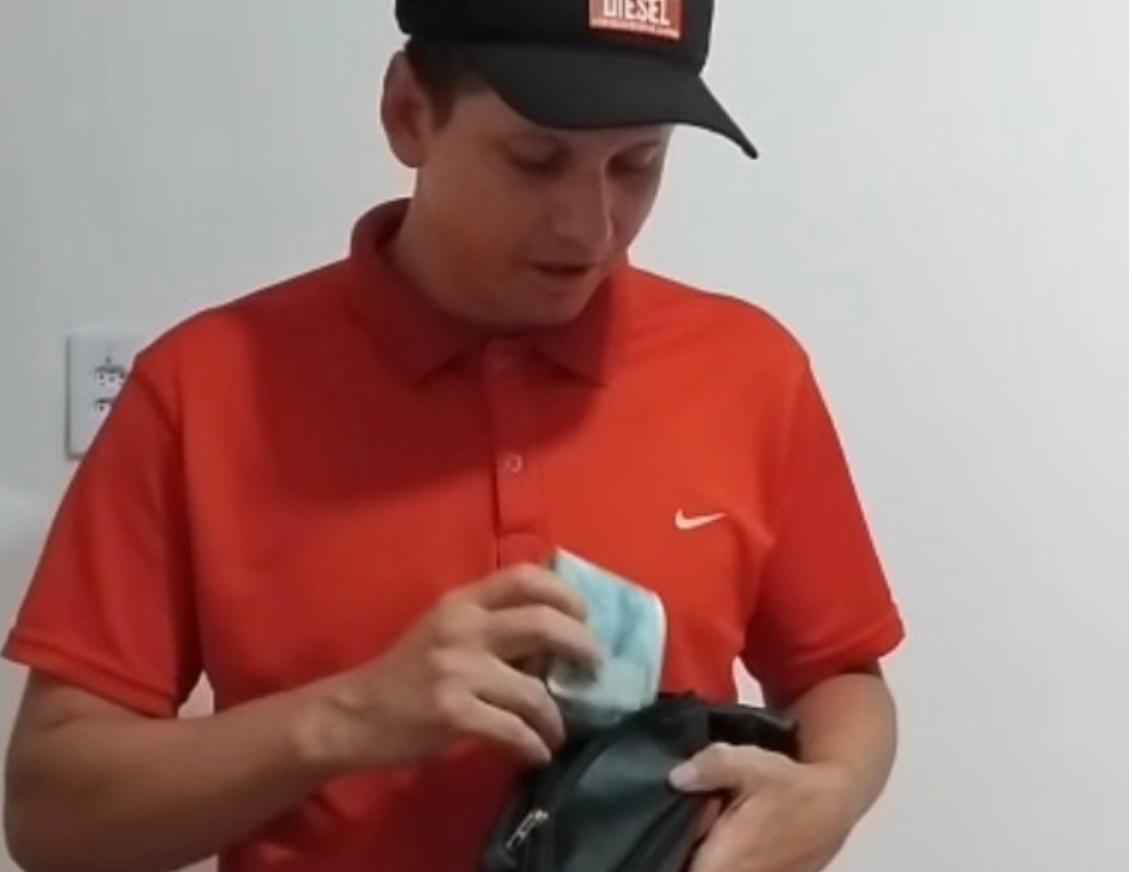 “Fui abastecer agora à noite os freezers na Prainha, no meu local de trabalho, no meu quiosque, e ao chegar lá me deparei com essa pochete na calçada do restaurante. Tem quase três mil reais e alguns objetos”, relatou Mário no vídeo.