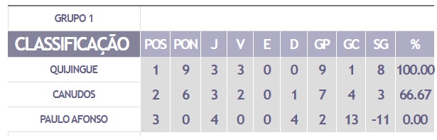 A Seleção de Paulo Afonso perdeu as duas partidas para Quijingue por 4 x 1 em casa e 2 x 0 fora, já contra Canudos foi goleada na estreia por 4 x 1 e hoje perdeu em casa por 3 x 0.