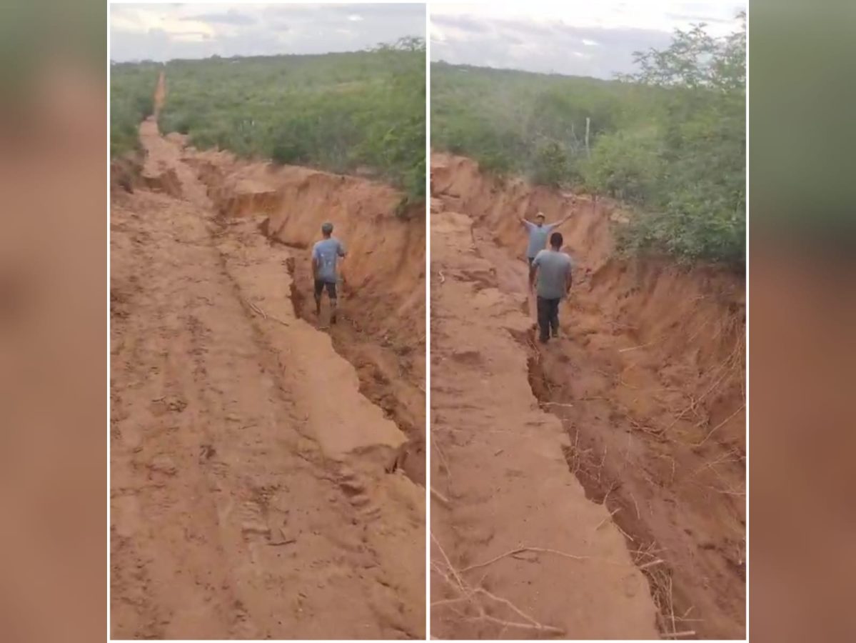 As fortes chuvas que têm castigado nossa região deixaram marcas profundas num dos acessos à reserva ecológica Raso da Catarina. Um morador, incrédulo diante das crateras que se formaram na estrada, desabafou: “Só passa avião!”.