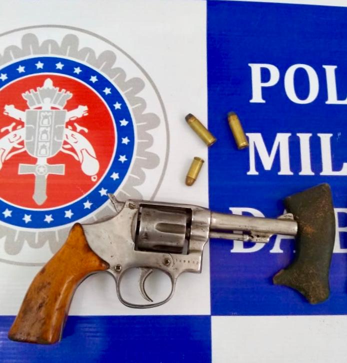 - 01 Revolver calibre .32, nº 169982, sem marca aparente, com três munições intactas do mesmo calibre;