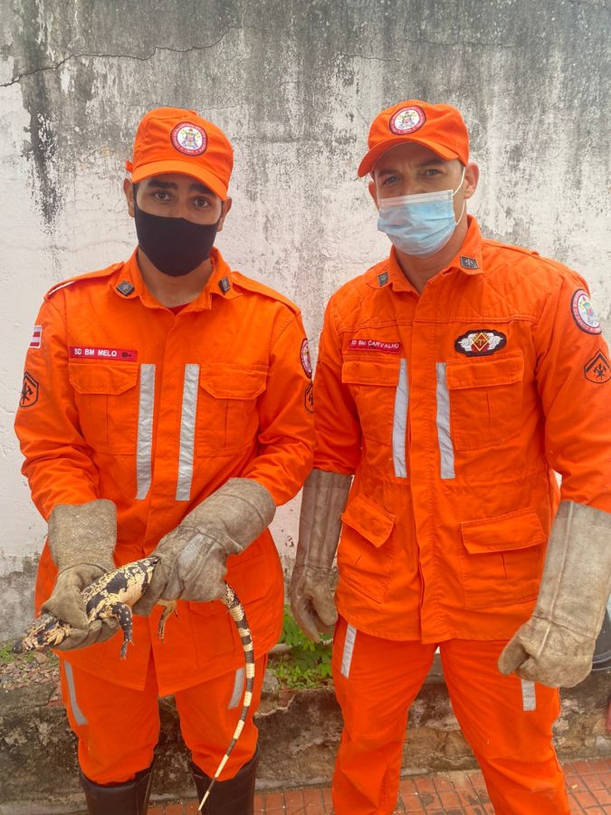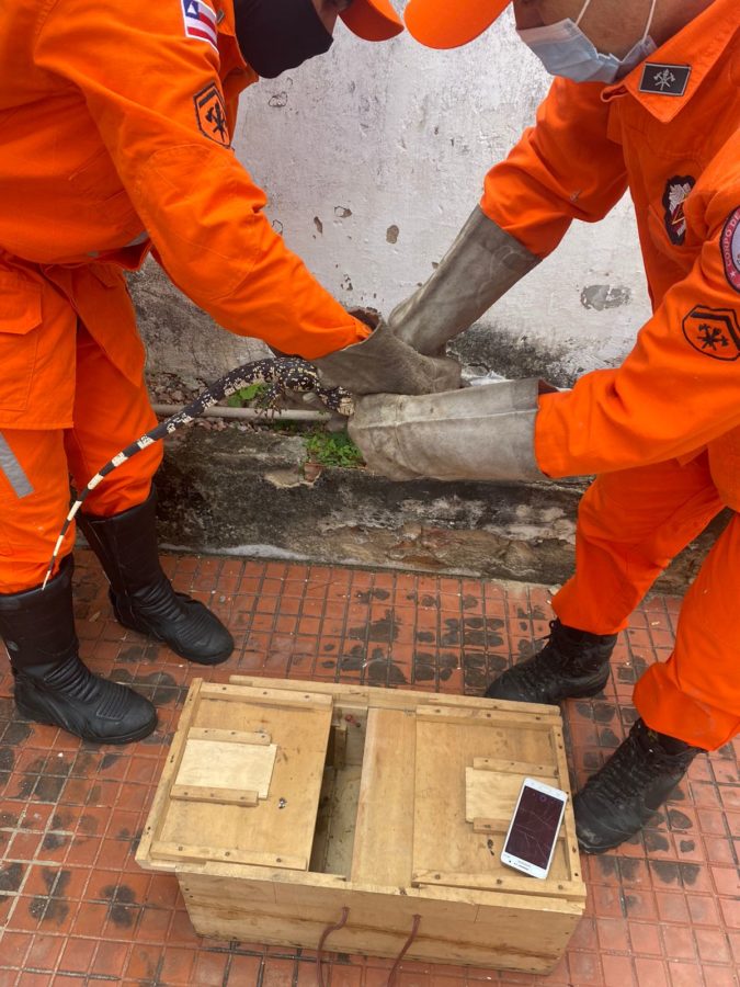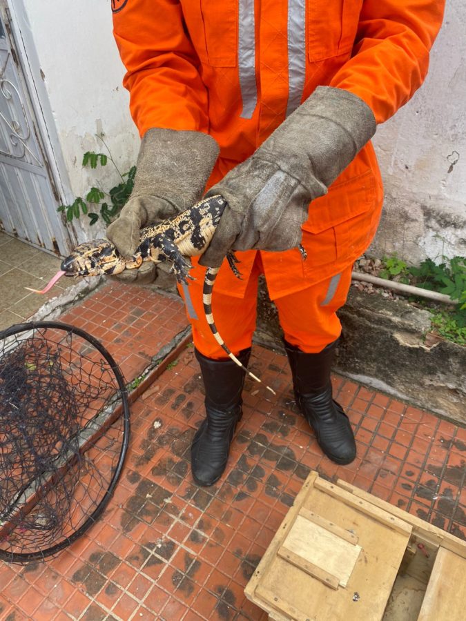 Um teiú foi resgatado por uma guarnição do 15° Grupamento de Bombeiros Militar (15°GBM/Paulo Afonso). O animal estava numa residência na Avenida André Falcão em Paulo Afonso, quando foi avistado por moradores que acionaram os bombeiros.