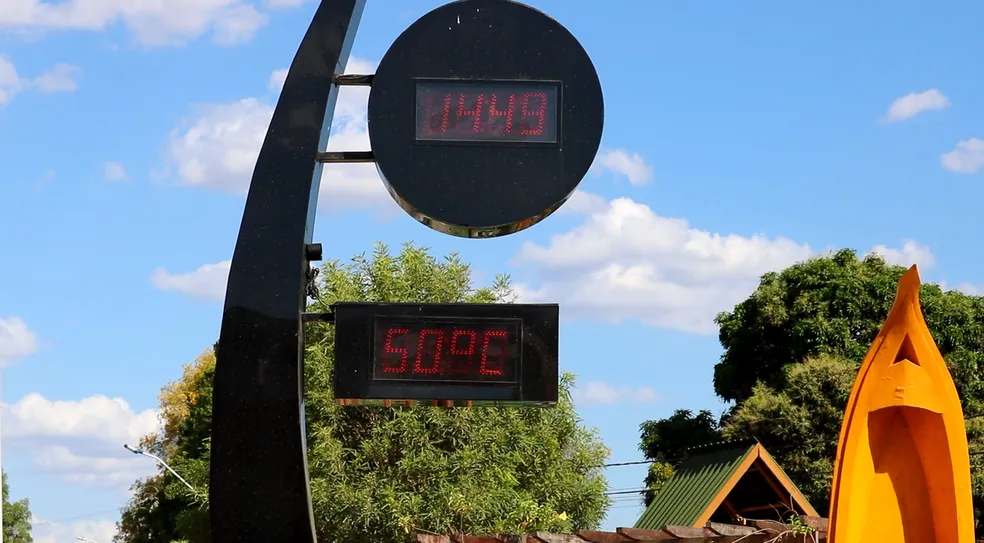 Moradores de Pão de Açúcar, no Sertão do São Francisco, em Alagoas, distante 147 km de Paulo Afonso, na Bahia, fizeram registros que mostram um termômetro da cidade marcando 50ºC na tarde desta terça-feira (14). O equipamento fica no sol, por isso essa é a sensação térmica na cidade.