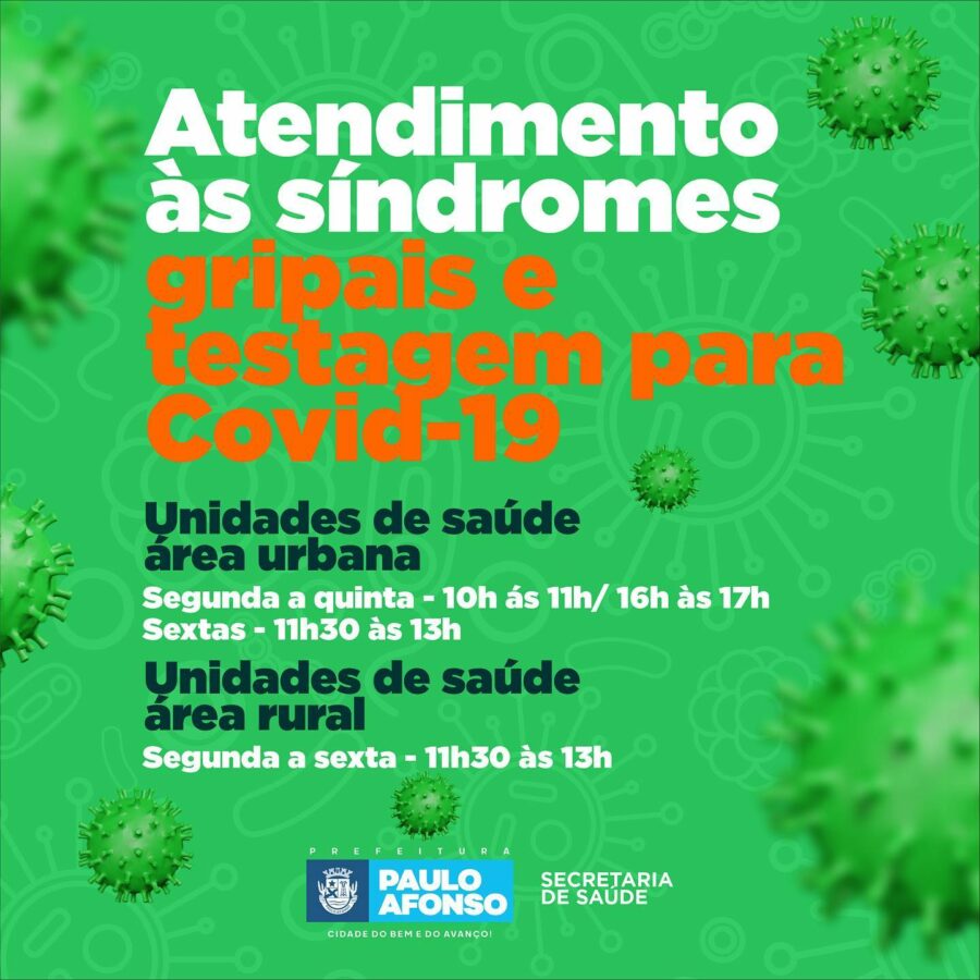 Testagens para Covid-19 e atendimento a pessoas com gripe serão realizados nos Postos de Saúde
