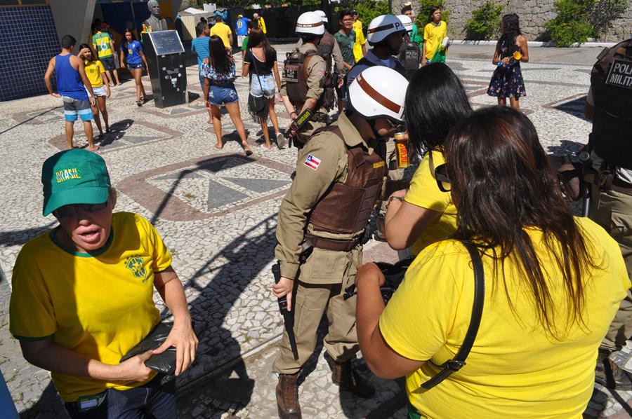 Segundo o repórter Carlos Alexandre que acompanhou o movimento da torcida na Arena, a Polícia Militar fez uma revista nos torcedores para garantir o máximo de segurança a quem realmente quer aproveitar o espaço e torcer para a Seleção.