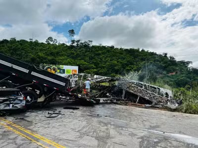 Um grave acidente na madrugada deste sábado (21), na BR-116, zona rural de Teófilo Otoni, Minas Gerais, deixou 41 mortos. Um ônibus da empresa EMTRAM, que seguia de São Paulo para Vitória da Conquista (BA), colidiu com uma carreta carregada de blocos de pedras após perder o controle. O veículo pegou fogo, resultando em corpos carbonizados.