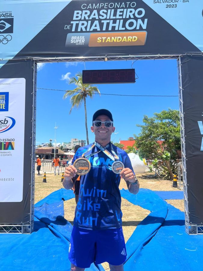 Desistir nunca foi e nunca será uma opção para mim. Lutei com todas as minhas forças para alcançar meus sonhos, e hoje enfrentei a prova mais dura da minha vida! Na natação, além das condições normais, ver meu filho (Júlio Gabriel) se distanciar e ser resgatado por salva-vidas não foi fácil. Mesmo assim, continuamos firmes. Na etapa de bike, enfrentei um problema técnico na roda, onde tive que percorrer uma volta inteira com a roda presa. Parei para tentar consertar, retomei a prova, mas o problema persistiu. Parei novamente, fiz os ajustes necessários e retornei à competição. No entanto, já estava muito atrás dos líderes. Mesmo diante de todas as adversidades, a opção nunca foi parar. Decidi ir até o fim e assim o fiz. Dei o meu máximo na corrida, e a cada obstáculo, só pensava em dar o meu melhor. Consegui superar todas as dificuldades e garanti minha vaga para o Mundial da Espanha. Quero expressar meu profundo agradecimento a todos que, de alguma forma, nos ajudaram a estar aqui nessa prova. Obrigado de todo meu coração!“, declarou Kleber Nascimento em um emocionante depoimento em sua rede social.