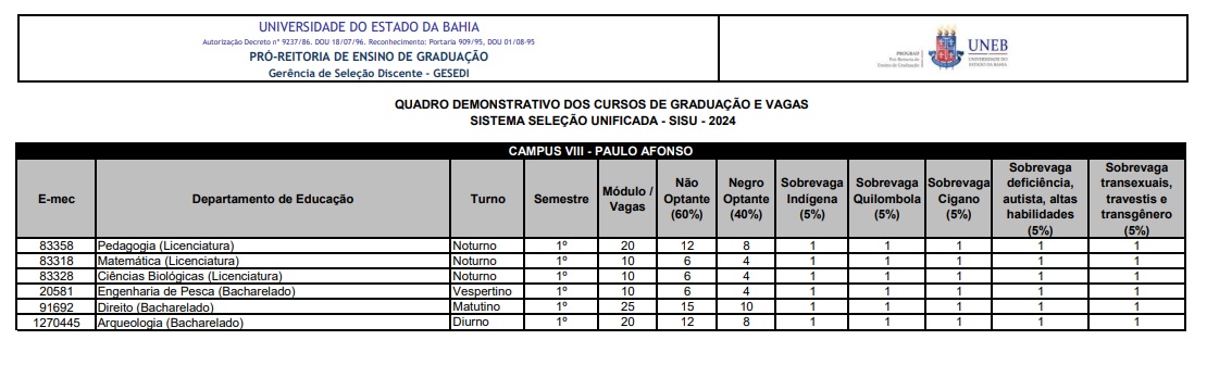 – Confira o quadro de vagas da UNEB ao SiSU 2024